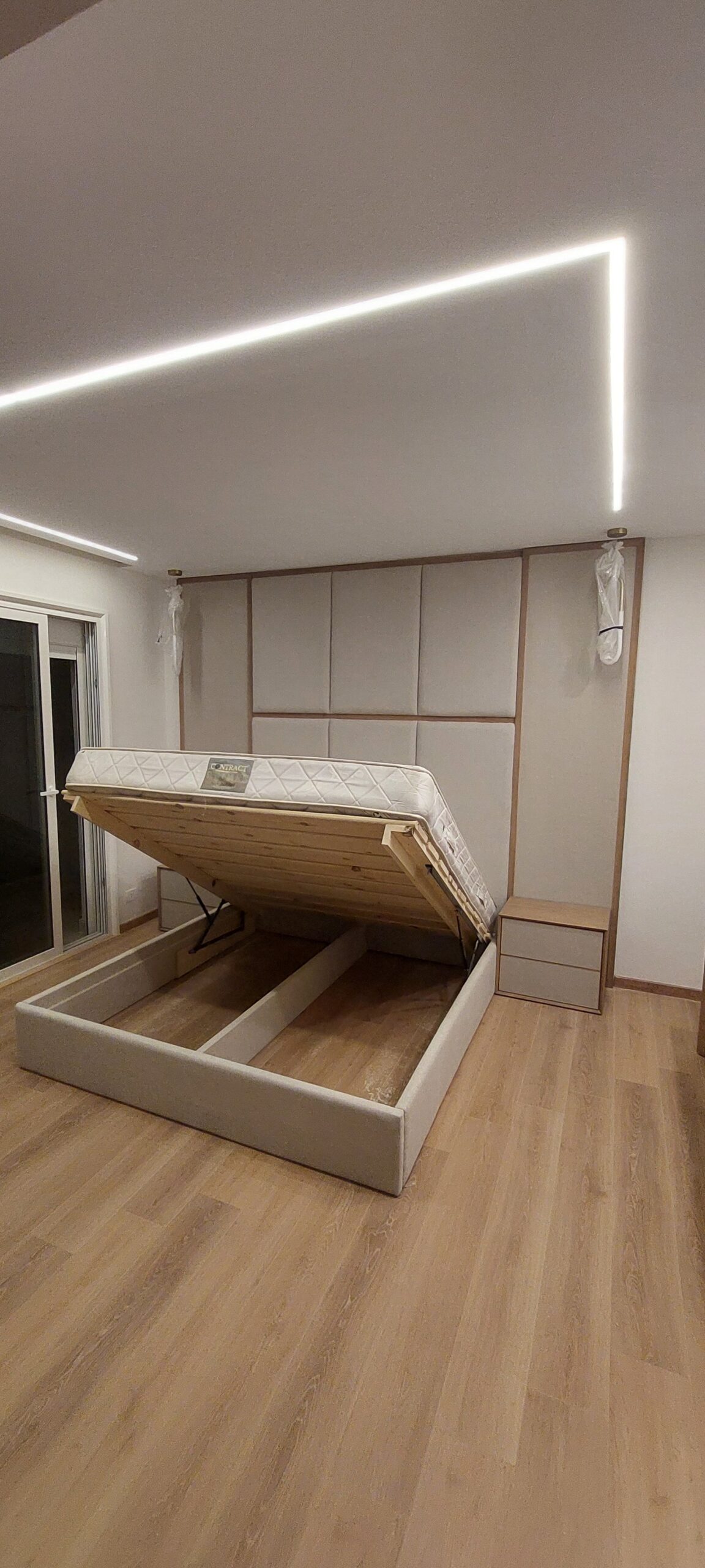 Modern upholstered bed with a minimalist design