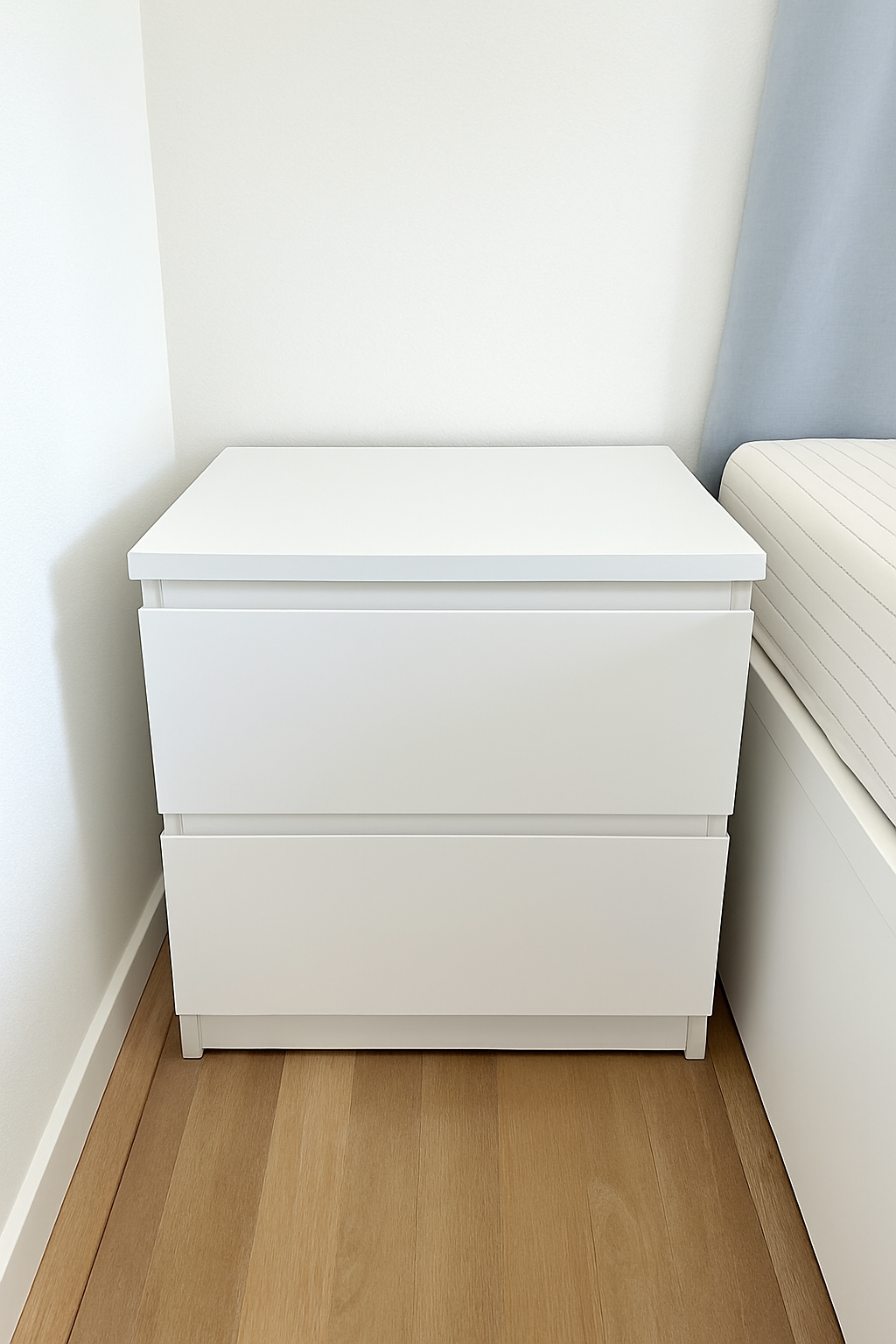 Modern white nightstand with a minimalist design